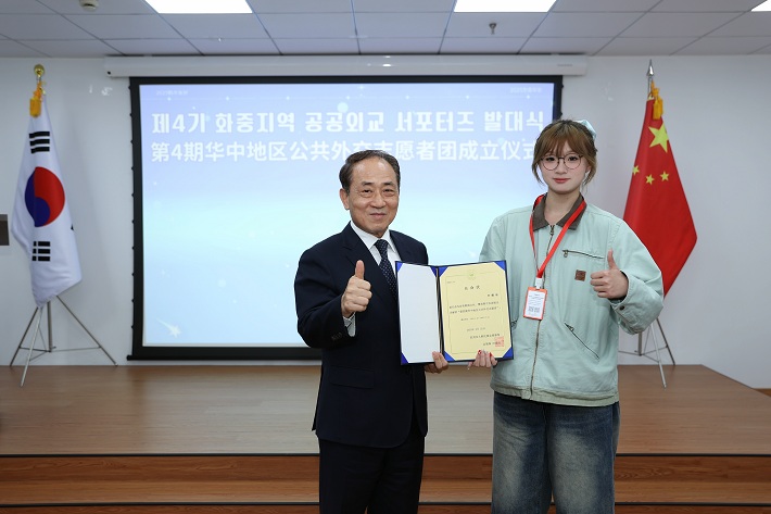 4月25日下午,第四期华中地区中韩公共外交志愿者团成立仪式在韩国驻武汉总领事馆隆重举行。该项目由韩国驻武汉总领事馆主办,作为促进中韩青年文化交流的重要平台,自启动以来已成功举办四届,在推动两国人文交流方面取得显著成效。