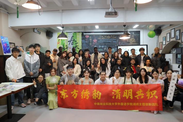 2025年4月1日晚,中南林业科技大学红楼五语学术交流中心内诗意盎然、绣影摇曳,外国语学院湘绣主题创新团队主办的"东方绣韵·清明共织"主题文化活动在此成功举办。来自日本、摩洛哥等十一个国家的二十二名国际学院留学生与中国师生通过文化讲堂、艺术展演与非遗体验,在传统与现代的交融中感受中华文化魅力,于互动实践中深化文明互鉴。