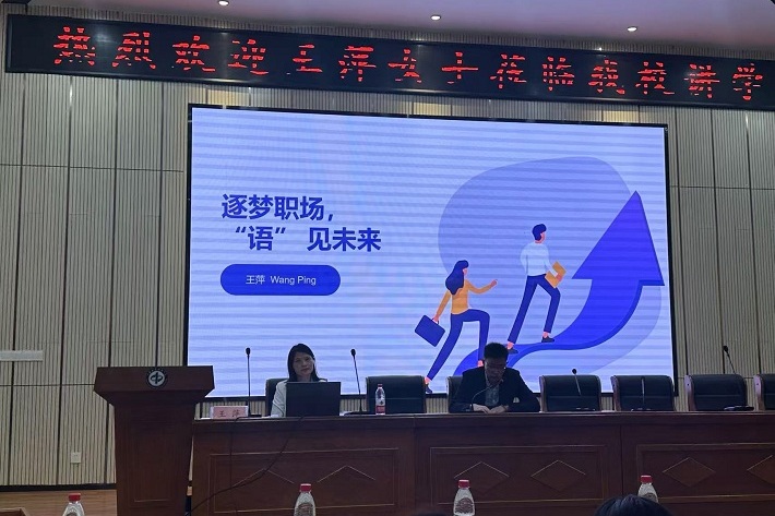王萍主任在讲座中聚焦外语专业发展路径,基于翔实的数据,剖析当前就业困境与全球化4.0时代的新机遇。她指出,当前就业市场对“语言+专业技能”的复合型人才需求增加,外语专业的破局之道在于将语言与其他技能、行业深度融合,实现“语言+X”的T型进化。针对职业发展,王主任提出“语言+N种可能”的职业矩阵,即纵向深耕成为行业语言专家,横向拓展探索跨界融合新范式。结合用人单位视角,她从简历优化、职业定位、面试策略及能力认知四大维度解析求职痛点,并系统梳理校内外多元求职渠道,为在场学生给出涵盖求职各环节的实用建议。