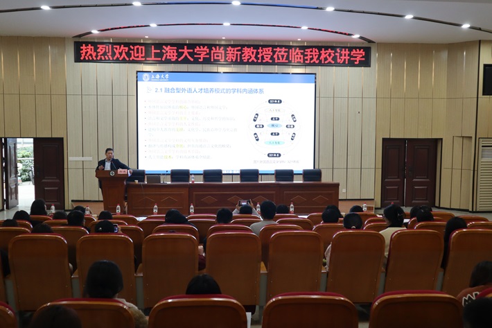 2024年11月21日下午,上海大学教授、博士生导师尚新应邀莅临我院,为我院师生作了题为“新文科视域下外语专业卓越创新人才培养模式转型”的专题学术讲座。讲座由学院副院长何敏主持,学院教师、本科生及研究生近百人踊跃参与。