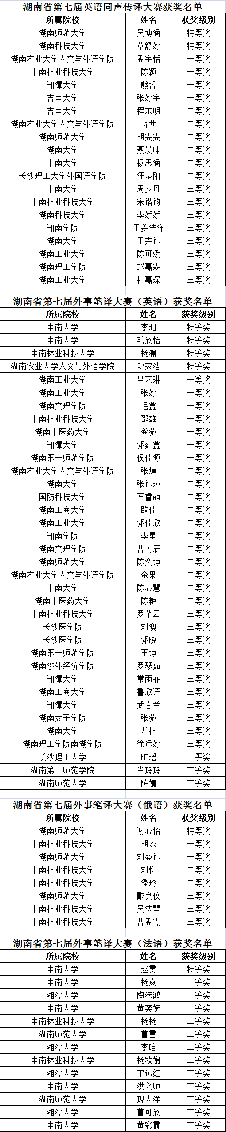 附:湖南省第七届英语同声传译大赛和外事笔译大赛获奖名单