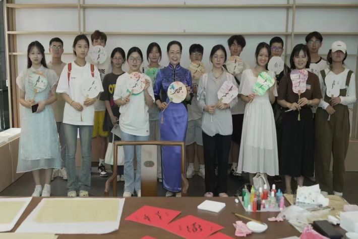 2024年9月3日,我校近四十名大学生志愿者在外国语学院“湖湘文化英语说”课程组肖琼、张慧兴、阳娅琦三位老师的组织下,参与了湖南省文化馆举办的“女书雅韵·非遗新章——女书习俗专题活动”。观摩完140余件精美的女书展品后,志愿者们分组参加女书书写、女书漆扇制作及女书穿戴甲制作的体验活动。
