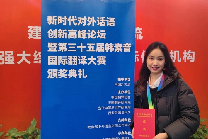 11月25日,新时代对外话语创新高峰论坛暨第三十五届韩素音国际翻译大赛颁奖典礼在中国外文局举行。我院获奖师生应邀参加。