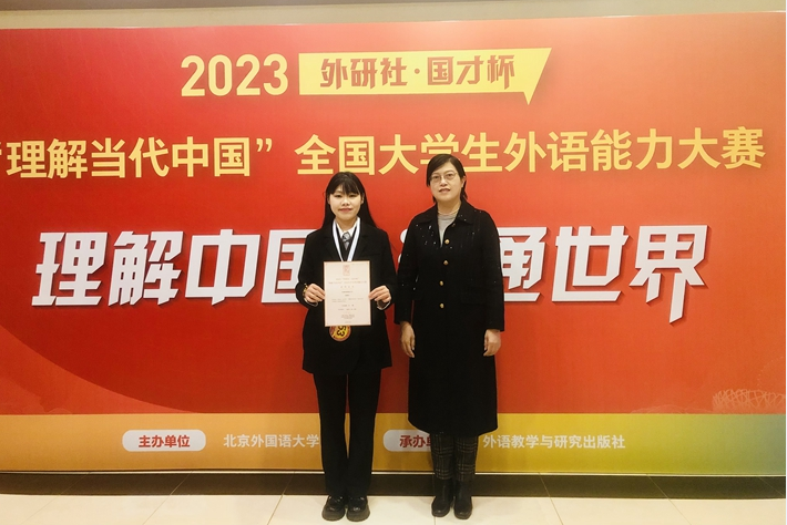 经历校赛、省赛、国赛第一轮,日语组还闯入国赛第二轮,通过阅读、写作、笔译、口译、演讲全方位全技能的综合选拔,我院日语系2020级本科生崔赛丹同学和法语系2020级本科生程弋同学,分别从包括MTI研究生在内的6914名日语选手和1955名法语选手中脱颖而出,凭借过硬的专业素质,精彩的现场表现,在全国总决赛中斩获日语组大赛银奖、法语组大赛铜奖,展示了我院学子的独特风采。