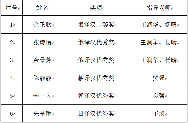 榜单上最亮眼的是我院2020级俄语专业余正欣同学,荣获俄译汉二等奖。本次大赛俄译汉项目全国共评出一等奖1名,二等奖2名,三等奖3名,优秀奖33名。
