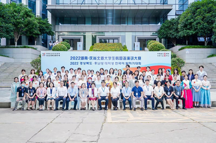 2022年是中韩建交30周年,也是中韩文化交流年。本次演讲大赛的宗旨是为热爱韩国语人士提供展示韩国语综合能力的机会,满足中韩两国交往对韩国语人才日益增长的需求,进一步加深湖南省与韩国庆尚北道两地区人民之间相互了解与信任,推动两国友城间务实交流合作。我校受邀承办本次大赛。来自全省四所本科院校和三所专科院校朝鲜语专业的21位选手参加了此次赛事。