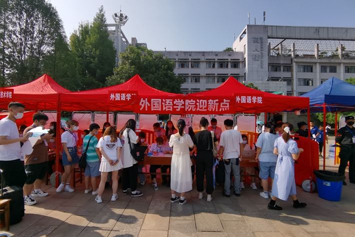 9月9日-10日新生报到期间,学院院长张沉香、党委书记李鹏飞、党委副书记张学兵等院领导多次莅临现场指导迎新工作,询问新生报到情况,并送上对新生的祝福。张沉香表示:希望21级新生们尽早打好语言基础,做好自我规划,在未来百尺竿头、更进一步。