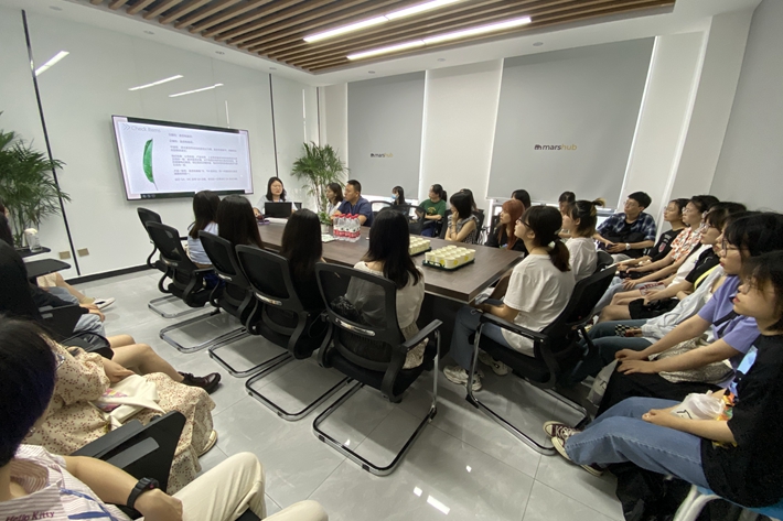 6月22日下午,我院党委书记李鹏飞、朝鲜语系主任李洪兰、副主任周禧玲、樊强老师、廖孜孜老师以及2018级朝鲜语系全体同学一行前往昆仲科技湖南分公司参观调研。昆仲科技彼岸分公司CEO Mike.Peng、火星学院院长Parker.Xiang、行政主任Cici.Lei、校企合作负责人Marc.Yuan、新媒体负责人Vick.Lv出席了座谈会。