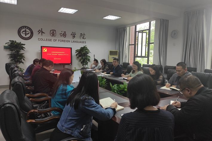 5月25日下午,在知语楼二楼会议室,外国语学院党委理论学习中心组党史学习教育读书班进行第三次集体学习,围绕“学史崇德”主题,从“立政德、明大德、守公德、严私德、扬师德、承贤德”等方面,联系思想和工作实际进行交流学习与讨论。学院党委书记李鹏飞主持,党委班子成员、教工支部书记、系部主任参加。