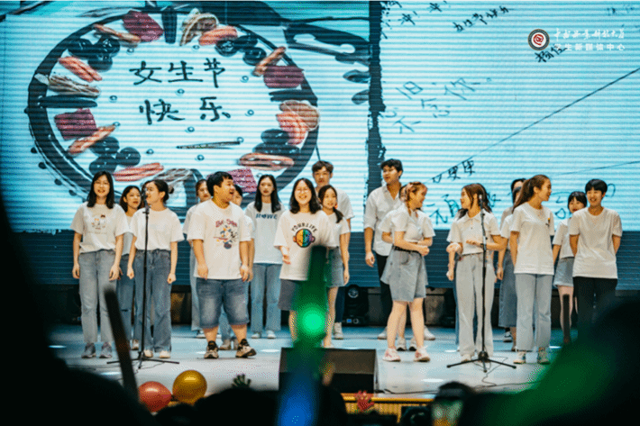 踏着充满活力的鼓点,洋溢着自信的笑容,表演者们与观众互动,节奏感强烈的音乐节拍瞬间点燃全场。师生合唱更是将气氛拉至高潮。