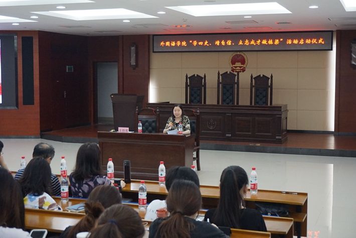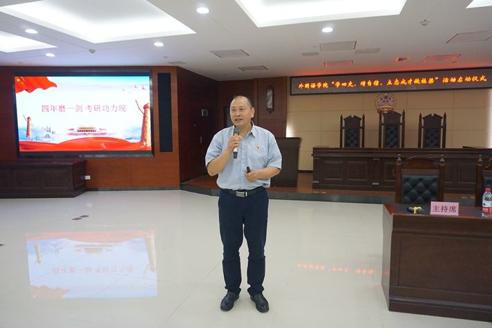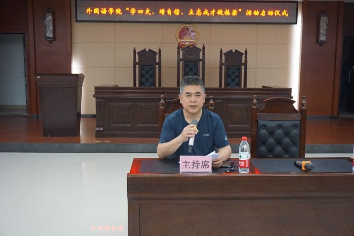 5月11日晚,外国语学院党委在博文楼一楼会议室举办“学四史、增自信、立志成才做栋梁”党史学习教育系列活动启动仪式,学院党委书记李鹏飞主持,环境学院党委书记刘光辉应邀作考研专题辅导报告,学院院长张沉香作专业报告,学院党委副书记张学兵作动员讲话。大会利用bilibili直播平台,采取线上和线下相结合的方式进行,学院党政班子成员、班主任老师、师生党支部书记、辅导员以及全体大三学生线下方式参加,大一、大二学生线上方式参与,全院共计1300余人参会。
