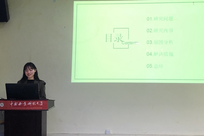 第一位主讲人是姚蓝同学。她结合了自己的实践经历,针对农业文本中专业术语和长句翻译中出现的问题,运用莱斯文本类型翻译理论,进行研究,并给出了针对性的翻译策略和建议。“一带一路”的创立和发展,给中国带来了更多与国际接轨的机会,也带来了更多翻译实践机会。在笔者的实践过程中,发现了农业文本翻译实践中存在专业术语和长句翻译等问题,提出要恰当运用直译的翻译方法、顺译的翻译策略,来提高翻译质量。