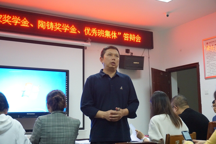 10月14日中午,我院2020年本科学生“国家奖学金、陶铸奖学金、优秀班集体”答辩会于知语楼102室召开。会议由学院团委书记蒋艳成主持。