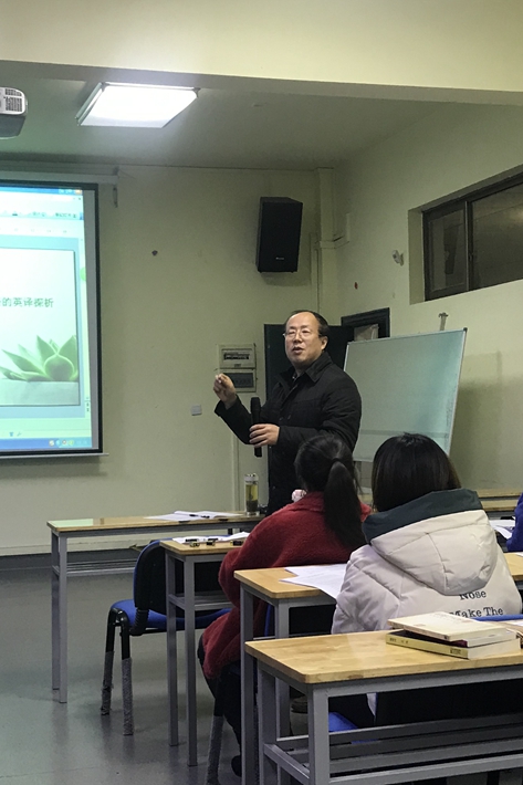 郭勇对三位主讲人分别进行了点评,提出了宝贵意见。他帮助同学们切实解决了论文写作中的一些疑惑,并提醒大家,从文学翻译角度来看,直译是最完美的翻译方法;他还建议,论文中应更多体现翻译过程,加入自己的心路历程,创作出更好的文章。