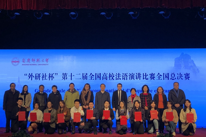 11月30日,2019年“外研社杯”全国高校法语演讲比赛总决赛在安徽安庆举行。我院法语系宁婧思老师和外教Céline ANDRE指导的法语系18级孙梦煜同学经过两轮竞赛,荣获本次大赛三等奖。这是我院学生第一次入围总决赛并获奖,创造了法语专业历年学科竞赛最好成绩。
