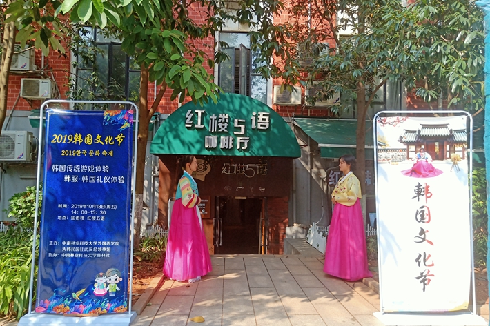 10月18日下午,由驻武汉韩国总领事馆和我校外国语学院共同举办的韩国语书写大赛暨韩国文化节在外国语学院“红楼五语”举行。