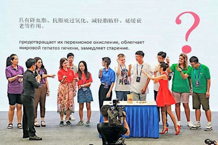 我院俄语系陈财同学在湖南中医药大学快乐养生营上为代表翻译