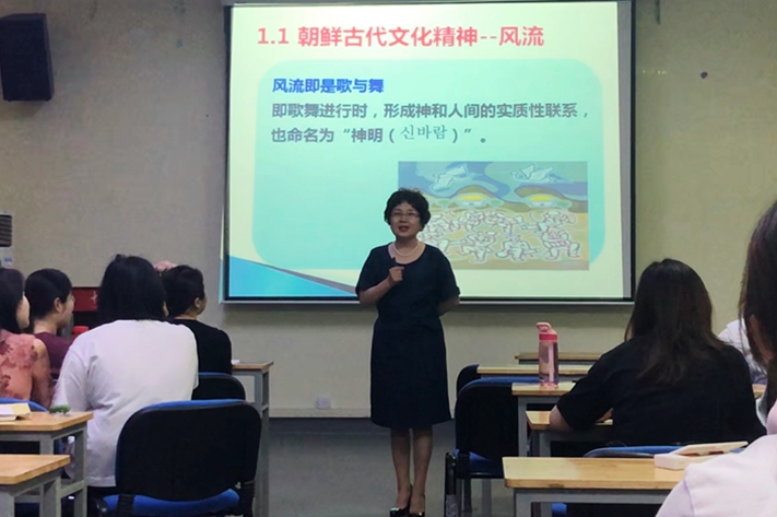 6月11日下午,湖南师范大学外国语学院教授、潇湘学者、东北亚研究中心主任蔡美花教授莅临我院,在至善楼217为我院朝鲜语系学生举办了一场题为“朝鲜传统文化与审美思维方式”的主题讲座。讲座由我院朝鲜系主任李洪兰主持,朝鲜语系全体师生参加。