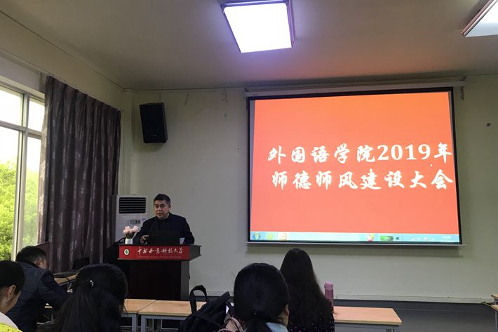 4月2日下午,我院在至善楼217召开全院教职工师德师风建设大会,会议由学院党委书记李鹏飞主持。