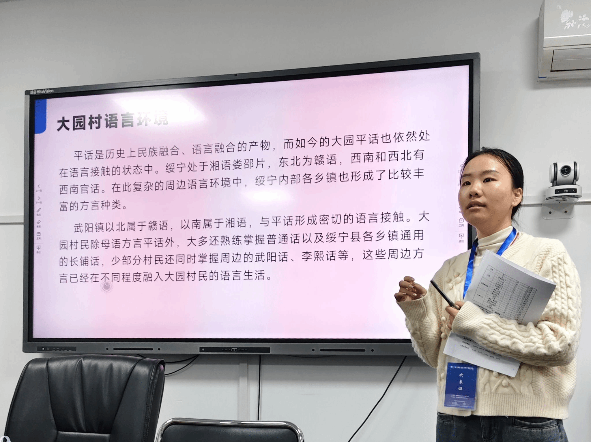 同期,第十三届全国社会语言学学术研讨会在石家庄如期举办。我院硕士研究生莫茜雅参加会议,并在“语言生活”专题研讨环节,以大园村语言生活为研究对象,系统汇报了研究论文。她的报告立足实地调研、逻辑清晰严谨,赢得了现场与会学者的积极评价。