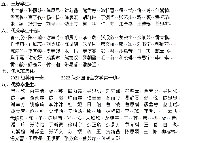 外国语学院2022~2023学年度“评优”、“评奖”推荐名单公示