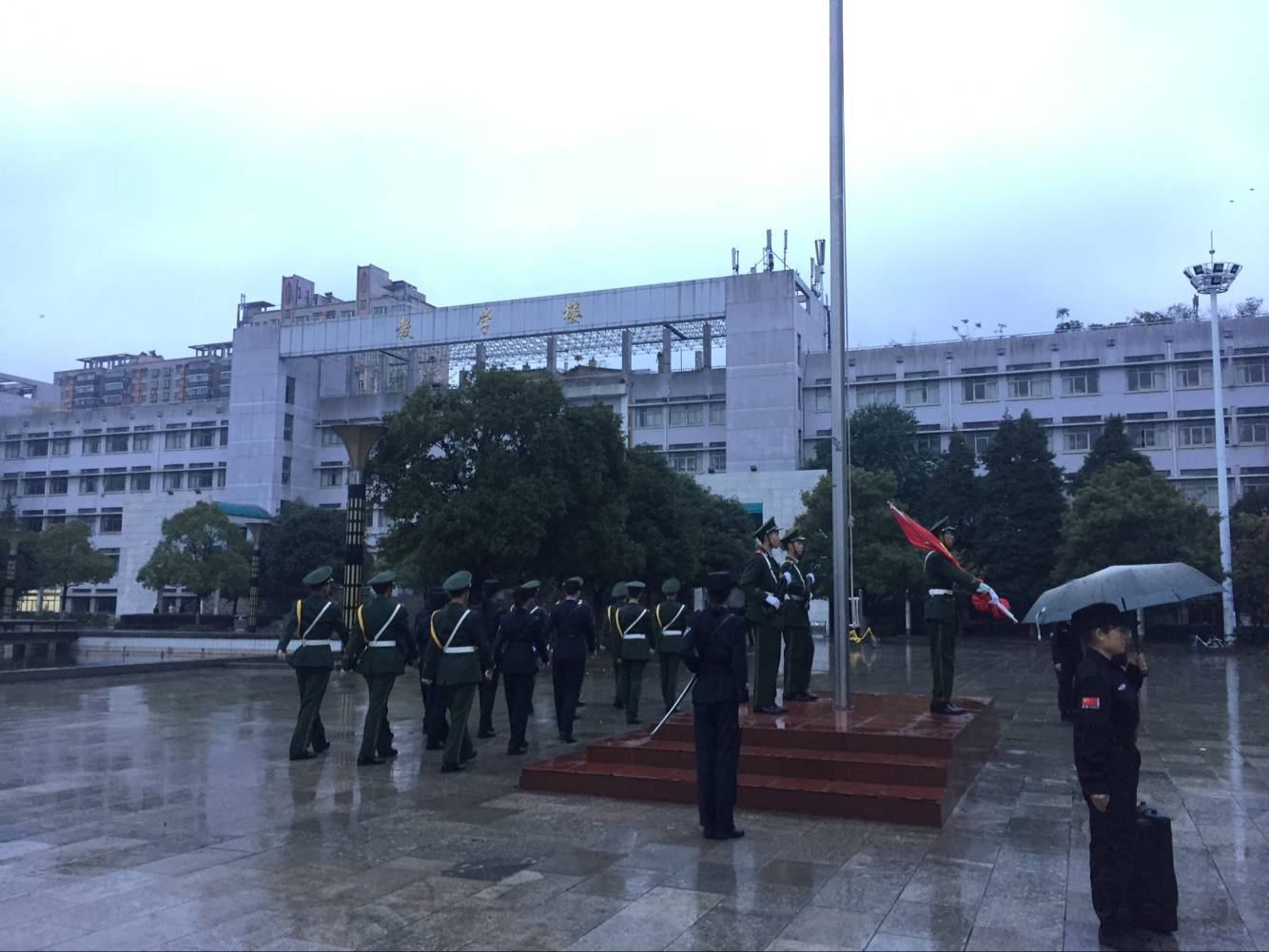 2017年11月13日早上7点,外国语学院全体学生于东园图书馆前坪圆满举行了升旗仪式与最美外院迎评宣讲仪式。学校学工部副部长李健林、外国语学院党委副书记肖兰平、团委书记刘一波、外国语学院第十八届团委学生会全体成员、全体党员、入党积极分子、各班班长团支书以及2017级所有同学共同出席了本次升旗仪式。