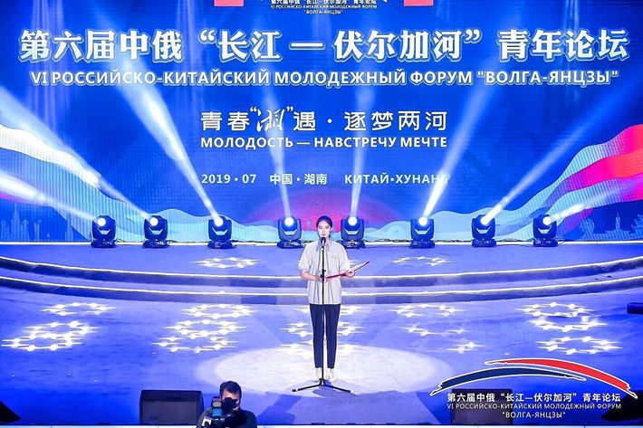7月16日上午,第六届中俄“长江—伏尔加河”青年论坛在湖南大学大礼堂开幕。国务委员王勇与俄罗斯总统驻伏尔加河沿岸联邦区副全权代表马什科夫采夫,湖南省省委书记、省人大常委会主任杜家毫,湖南省省长许达哲等共同出席了开幕式。中国青年代表、我院俄语系乔杉同学用一口流利的俄语征服了全场。她欢迎远道而来的朋友,希望和大家一起“亲身体验长沙这座历史文化名城和工程机械之都的魅力,感受中国璀璨文明和开放自信的风采。”她表示,“新时代的中俄青年,彼此视对方为‘搬不走的好邻居,拆不散的真伙伴’,我们将接过历史的传递棒,再续友谊,再谱华章”。