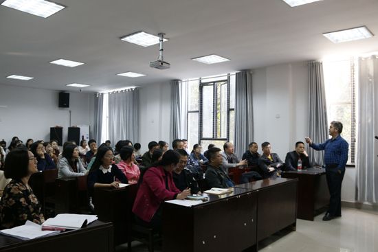 11月2日下午,在外语楼102报告厅,学院党委书记李鹏飞为我院师生党员作了题为:“学习贯彻落实党的十九大精神,加强学院党建工作,推进两学一做常态化”的专题辅导报告。