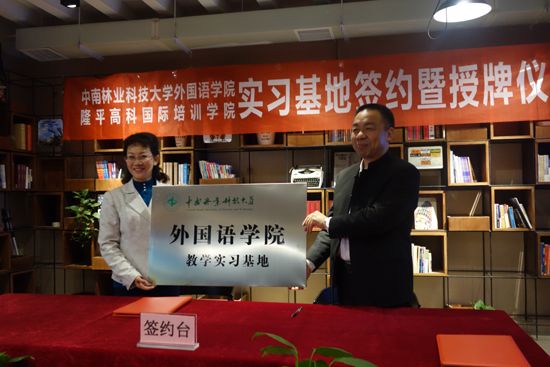 严曙光代表我校与隆平高科副总裁周丹签署了校企合作框架协议,并为隆平高科授予我院教学实习基地牌匾。