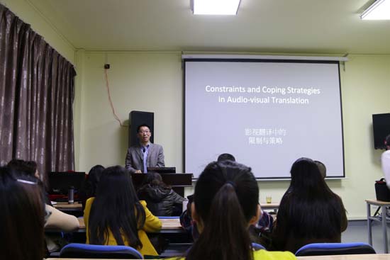 4月20日下午,澳门大学翻译学教授、博士生导师李德凤应邀来到我校,在科技楼217给我院师生带来了题为“影视翻译中的限制与策略”的精彩讲座。