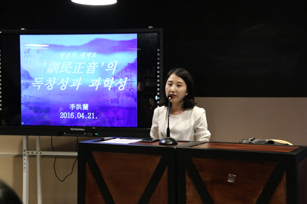 4月21日下午,刚从韩国全南大学获得博士学位的我院教师李洪兰在外国语学院“红楼5语”咖啡吧,为我院朝鲜语专业学生作了一场别开生面的“韩字追根溯源”讲座。本次讲座的主题为“走进韩字——‘训民正音’的独创性及科学性”,这是外国语学院“红楼论坛·专业”2016年第6期活动。邓联健院长主持了此次讲座。