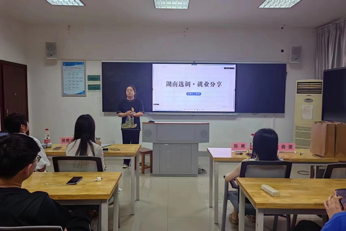 为充分发挥支部毕业研究生党员的榜样引领作用,搭建毕业研究生党员与在校学生党员沟通交流的平台,530日,我院研究生党支部在知语楼216举行“绰厉奋发,不负韶华——毕业生党员就业经验分享会”。会议由研究生党支部书记潘正午主持,毕业生党员吴菲、黄雅洁、蒋菱和陈爽四位毕业生党员分享就业经验,辅导员喻思妍老师出席。