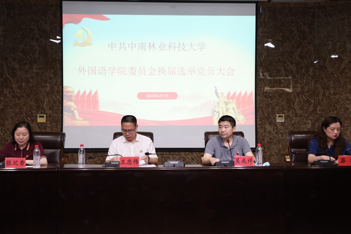 6月7日下午,外国语学院在东园图书馆报告厅召开中共中南林业科技大学外国语学院第三届委员会换届选举党员大会。会议由学院党委副书记、院长张沉香主持,学校党委委员、副校长王忠伟出席会议并讲话,学校党委组织部副部长兼党校副校长蔡洁到会指导,学院党委书记吴成祥代表上届党委作工作报告。145名师生党员参加会议。