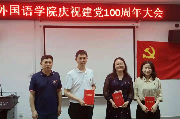 庆祝建党100年,起航时代新征程。6月29日,外国语学院党委在知语楼102隆重举行庆祝建党100周年大会。会议由党委副书记张学兵主持,党委书记李鹏飞讲话,院长张沉香宣读表彰决定,学院全体教工党员以及获奖学生党员参加。