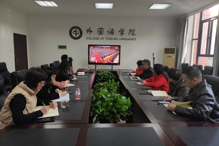 11月25日上午,中国共产党湖南省第十二次代表大会在省人民会堂隆重开幕,张庆伟同志代表第十一届省委作报告。外国语学院组织党政班子成员和党支部书记在知语楼二楼会议室集中收看了大会开幕式直播盛况,其他没上课的师生党员通过手机、电脑、电视等不同方式收看收听。大家仔细聆听,聚精会神,认真记录,心潮澎湃,感慨万千。观看完之后,大家一起交流了心得与体会。