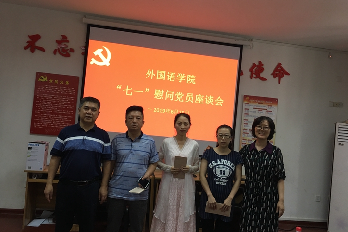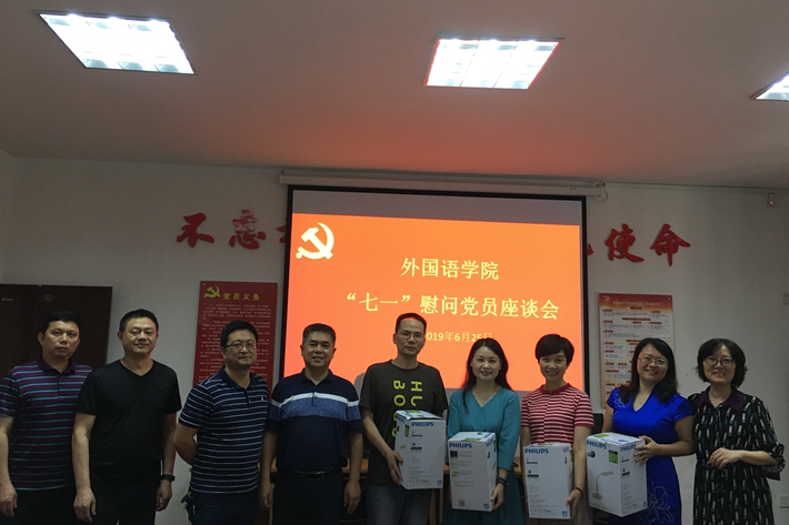 党的98岁生日到来之际,6月25日下午,外国语学院党委在知语楼1楼117共产党员之家召开了“七一”慰问入党整十年和困难教工党员座谈会。会议由党委成员汤满意主持,学院党委班子成员、入党整十年党员、困难教工党员参加了座谈。