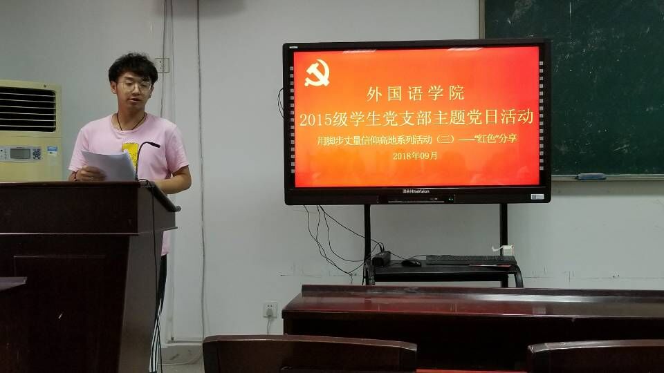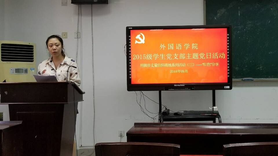 9月11日下午,外国语学院2015级学生党支部开展了用脚步丈量信仰高地系列活动之“红色”分享主题党日活动。活动内容主要是党员分享暑期参观红色基地或观看红色文学的经历及感想,共收集了47份材料。支部书记刘媚主持此次活动,2015级学生党支部全体成员参加。