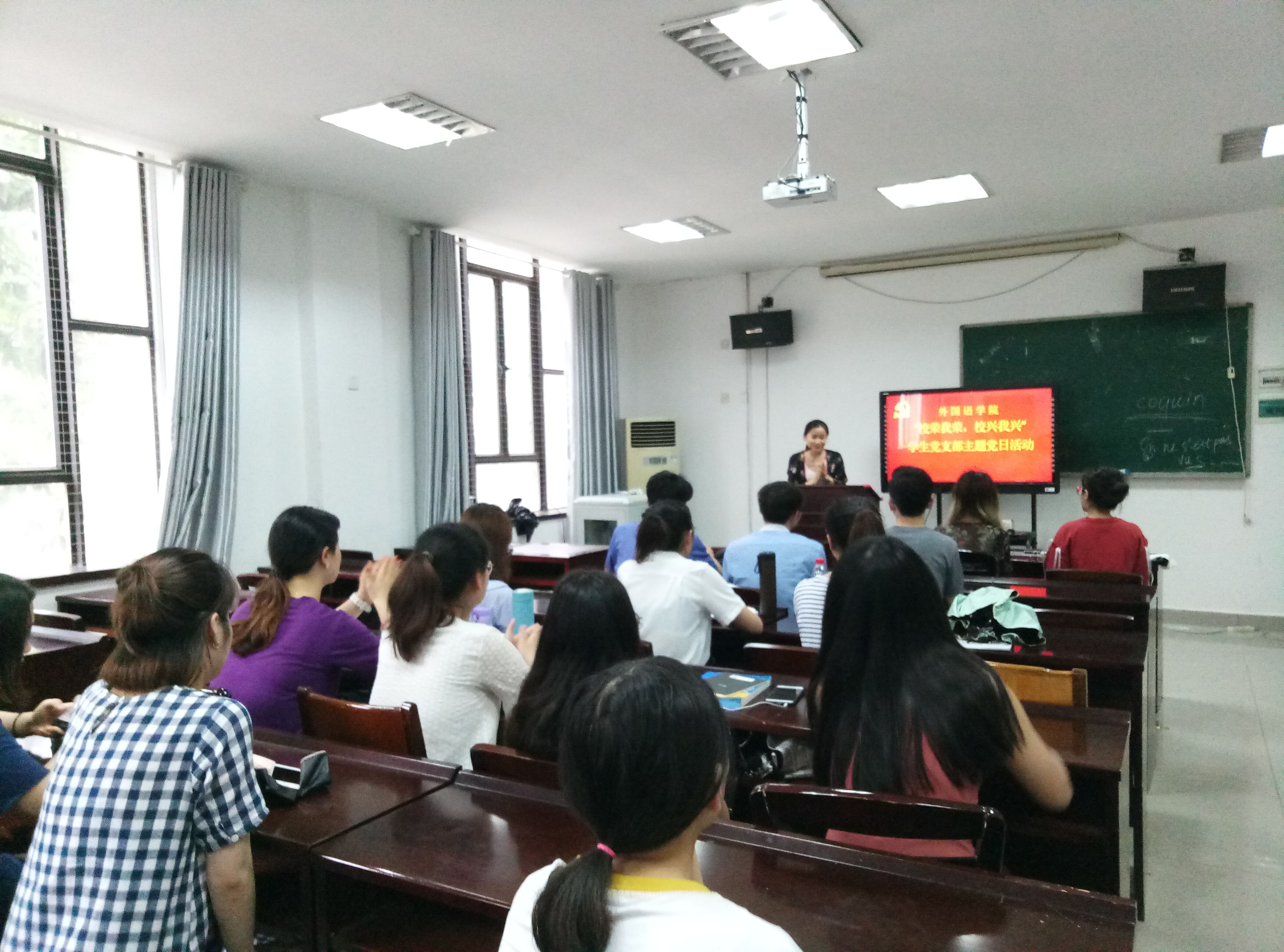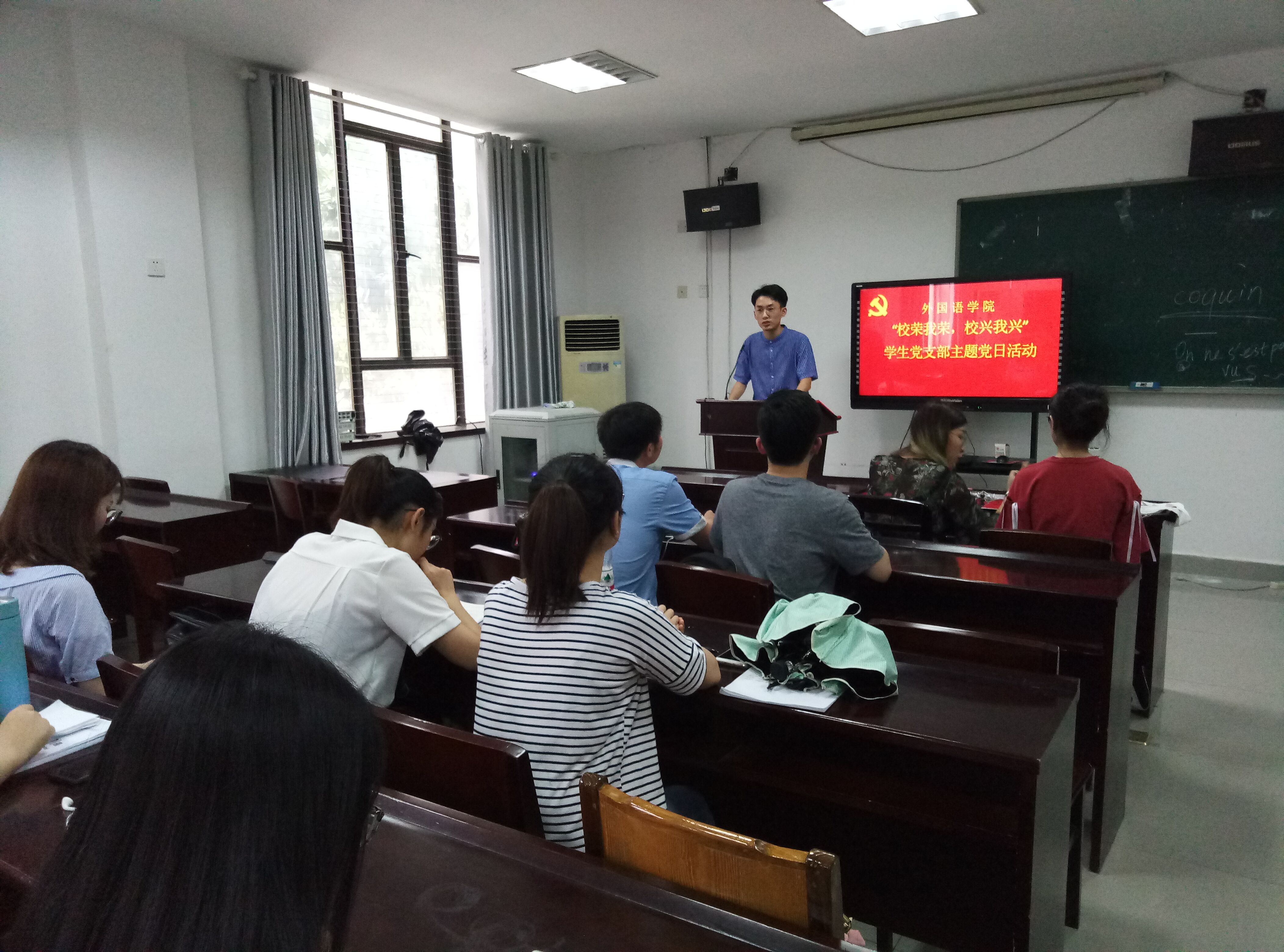 为激发学生党员爱校情怀,增强主人翁意识,促进学校发展建设。5月16日,外国语学院学生党支部开展了“校荣我荣 校兴我兴”主题党日活动,15级学生党支部副书记张伟杰主持会议,14级学生党支部和15级学生党支部全体成员参会。