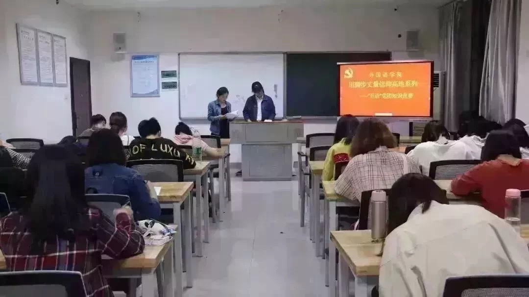 用脚步丈量信仰,以知识武装头脑。4月19日外国语学院学生党支部团委联合举办了“五语”党团知识竞赛,这是学生党支部主题党日创新活动,也是“团建月”重要活动,更是2018年党团共建“用脚步丈量信仰高地系列活动”开篇之作竞赛活动吸引了学生党员、党员发展对象、入党积极分子、团支书和各年级团员在内约160人报名参加。