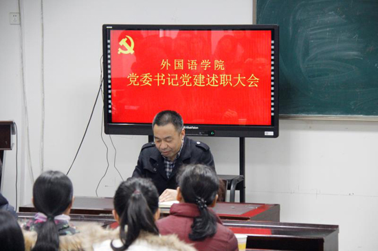 1月4日下午,学校副校长严曙光到外国语学院主持召开学院党委书记履行党建工作述职测评大会,随行的还有相关职能部门负责人,大会在外语楼102报告厅举行,参加会议的人员有全体教工党员和学生党员代表。