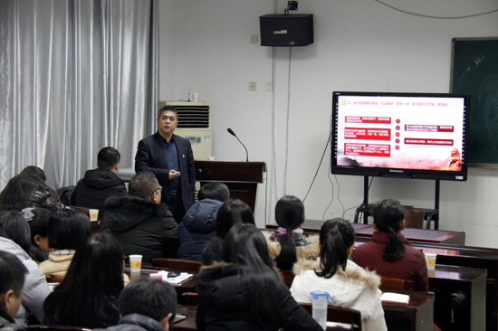 学院党委书记李鹏飞从全面深入学习贯彻十九大精神切实履行抓党建第一责任人职责、全力加强组织建设抓实推进“两学一做”学习教育常态化制度化、坚持社会主义办学方向立德树人全方位加强学院思想政治工作、坚持抓好党建促中心全力推进学院各项事业的发展、存在的主要问题和努力方向等五个方面向大会进行了述职。随后,全体教工党员和学生党员代表对李书记履行党建工作情况进行了民主测评。述职测评工作结束后,严校长对李书记的工作给予了高度的评价,对学院教职工一年来为学校的教学和科研工作所付出的辛勤劳动和努力表示诚挚的感谢,并祝福大家新年快乐,身体健康,万事如意!会议结束后,职能部门负责人还对学院的党建材料进行了现场核实调查。