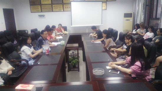 党委书记李鹏飞(左上二)和副院长李志奇(右上一)联系英语及翻译专业教研室党支部