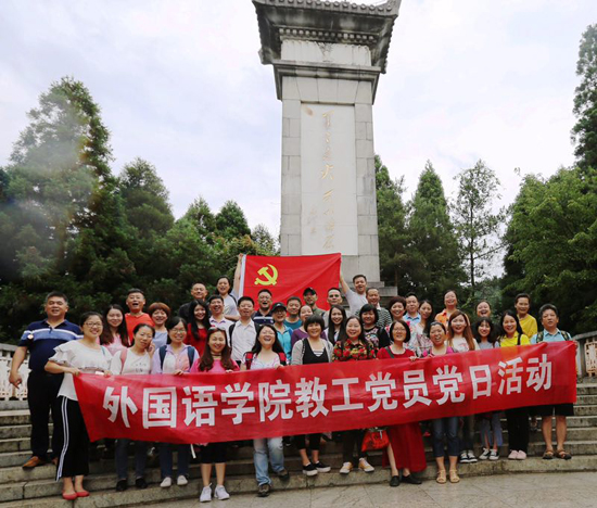 6月30日,在党的96周岁诞辰之际,外国语学院党委组织教工党员开展了“弘扬井冈山精神,做合格共产党员”的主题党日活动,四十几位教工党员来到革命圣地-井冈山,瞻仰革命故地,聆听斗争故事,接受了为期两天的精神洗礼和思想熏陶。