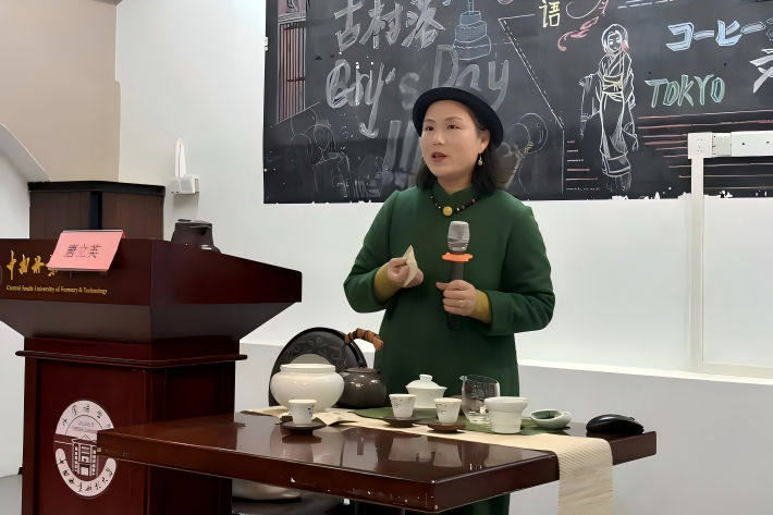 3月30日,应外国语学院学工办邀请,体育与音乐学院的唐立英老师在红楼五语为大学生主讲题为《一盏茶里的东方美学与心灵疗愈》的茶文化讲座。现场座无虚席,七十余名师生共同参与。讲座由兼职辅导员刘秀老师主持,同学们跟随茶马古道的悠远历史,开启了一场穿越时空的茶文化之旅。