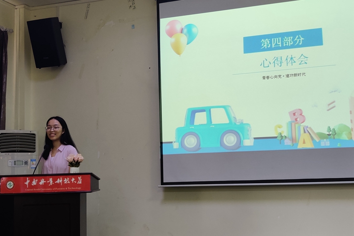 会议第二项,由三下乡团队成员代表李佳上台发言。她从三下乡团队的项目简介、前期保障、项目细节、心得体会等四个方面进行了具体详细的分享,向同学们展示了三下乡活动取得的成果。