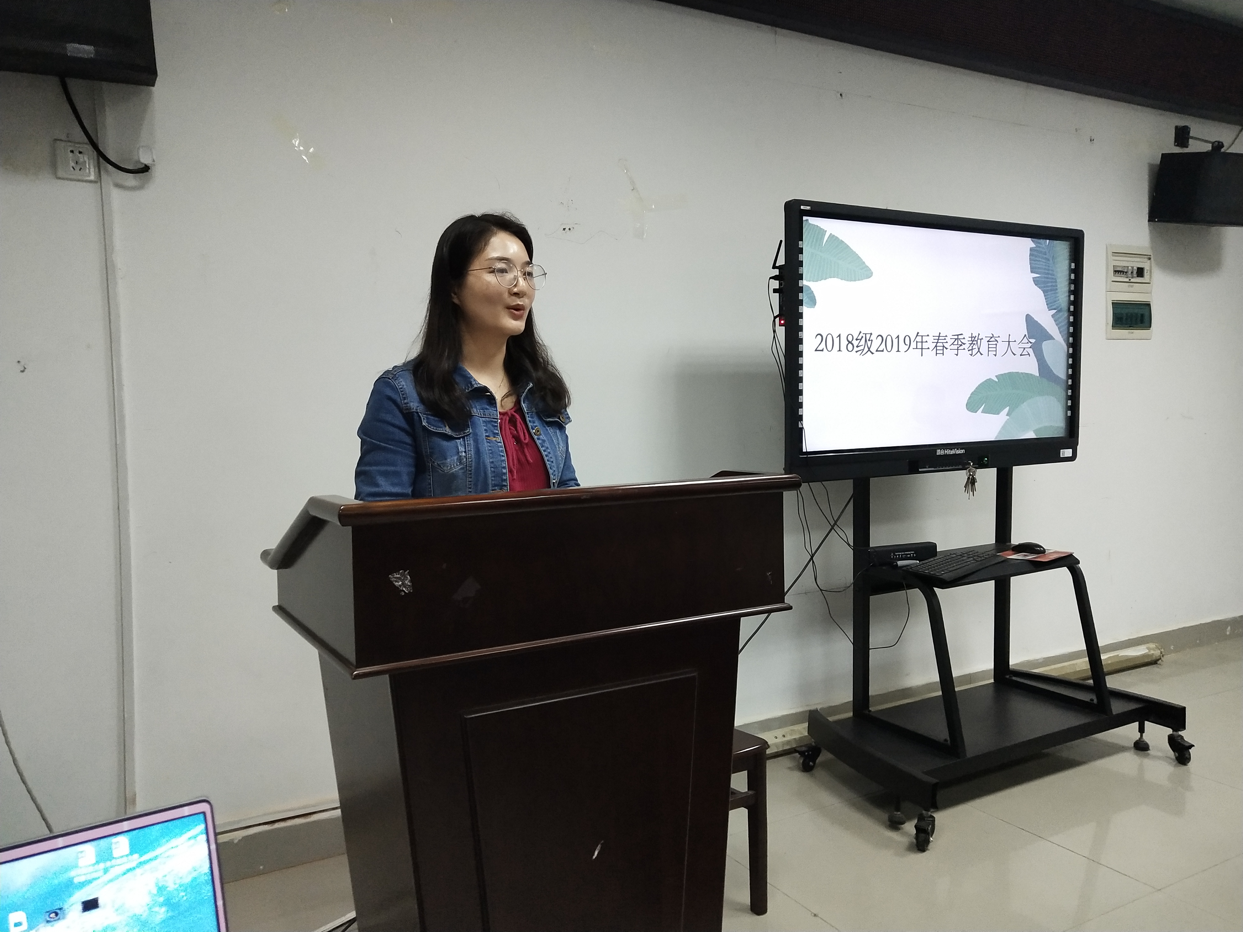4月22日晚,2018级2019年春季教育大会在知语楼102B举行。会议由2018级辅导员陈露主持,2018级学生代表参加本次会议。
