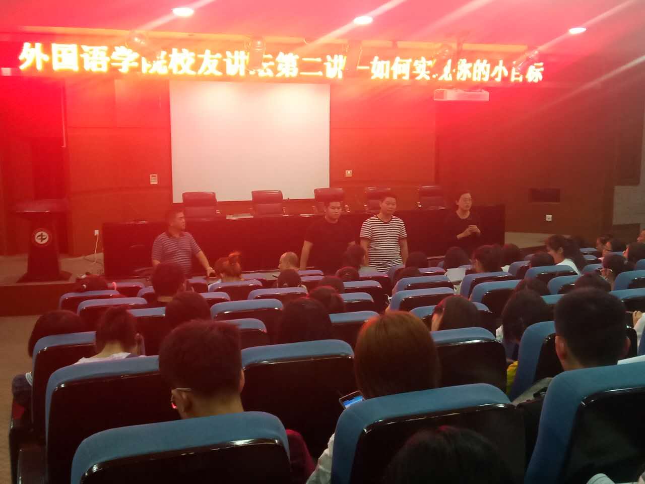 6月15日晚,外国语学院校友讲坛第二讲在图书馆报告厅举行。院党委书记李鹏飞、院团委书记刘一波、学工办陈露、英语专业张帆、日语专业教研室杨艳萍主任、丁建国、刘永辉、王荣、夏丽蓉等9位老师参加本次活动。