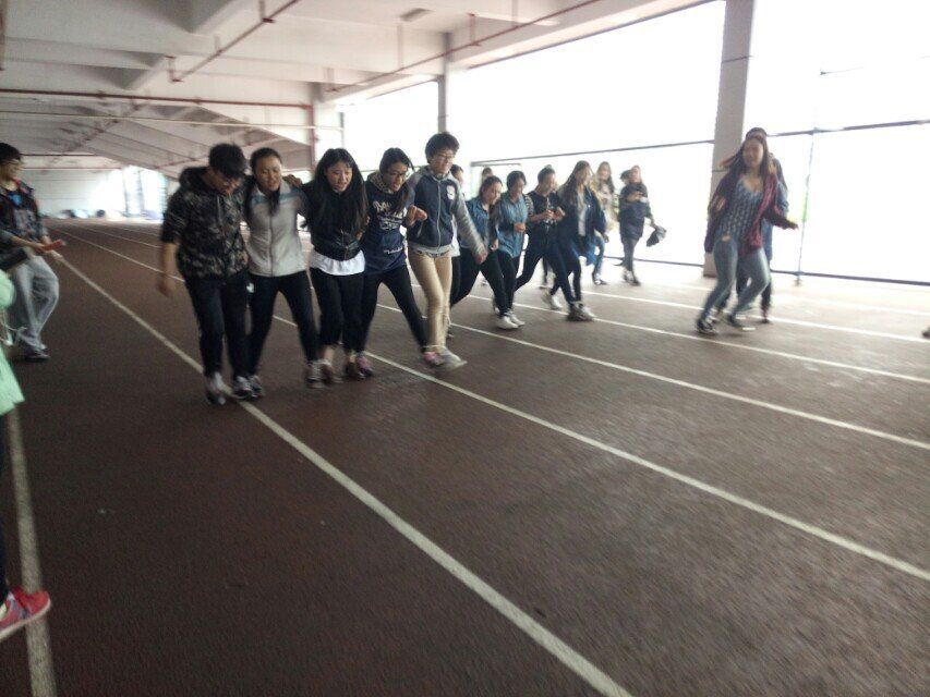 此次接力赛将十个班分为四组,然后依次进行各项比赛,前六项总分前两名的班级进入最后一项比赛,进行冠亚军的追逐。项目共有7个,几乎每一个都考验团队默契与配合。第一个是“跳大绳”,每班两人摇绳六人跳绳。其次是挤气球赛跑,需要两个人背对背夹着气球跑过一段距离,比拼的是时间,实际上考验的是合作能力。“无敌风火轮”则是利用报纸和胶带制作一个可以容纳全体队员的封闭大圆环,将圆环竖立起来,边走边滚动大圆环,30米赛跑拼时间,如果比赛中途出现了道具的破损,队伍要现场用道具修补,并记入总时间。乒乓球接力时,每人一副乒乓球拍,并用拍颠球10米传至下一同学,如果期间A队影响了B队的接力,那么A队每次要加五秒钟到总时间。“你画我猜”更是对默契程度的大检测,而“大胃王”比赛则满足了“吃货们”的终极愿望。最后日语一班和俄语二班脱颖而出,在“五人六足”50米赛跑的角逐下,日语一班夺得第一,俄语二班也毫不逊色,获得了第二名。