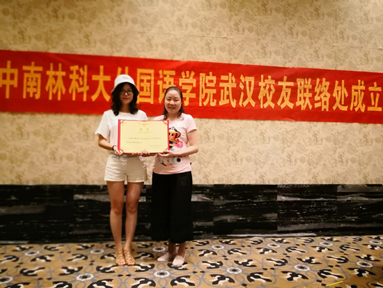 7月7日,外国语学院武汉校友联络处成立大会在武汉隆重举行,外国语学院院长张沉香,副院长、院校友办主任黄宇驰,院校友办副主任刘一波老师参加本次的成立大会。