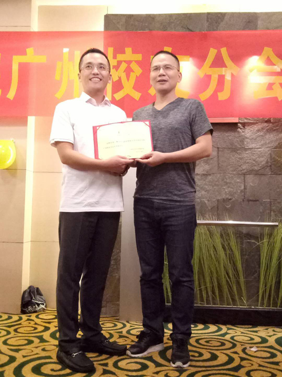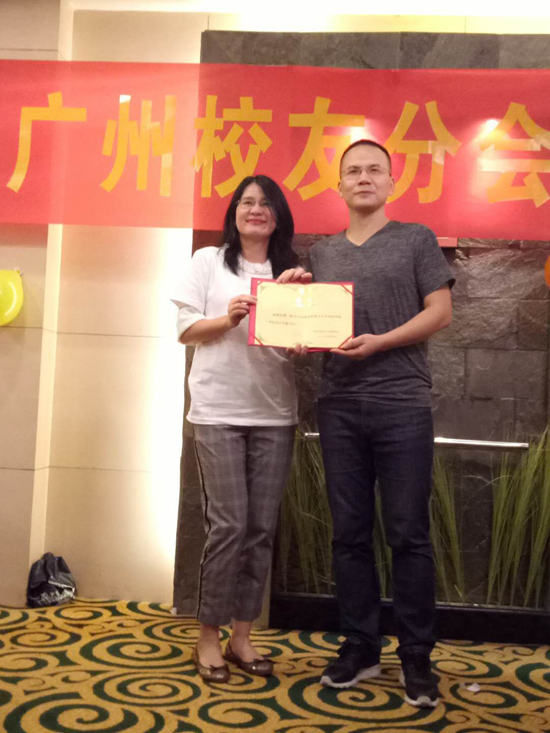 成立大会隆重而又热烈,大会产生了校友会组织机构成员,黄宇驰为他们一一颁发了聘书,并给广州校友分会成立正式授牌。